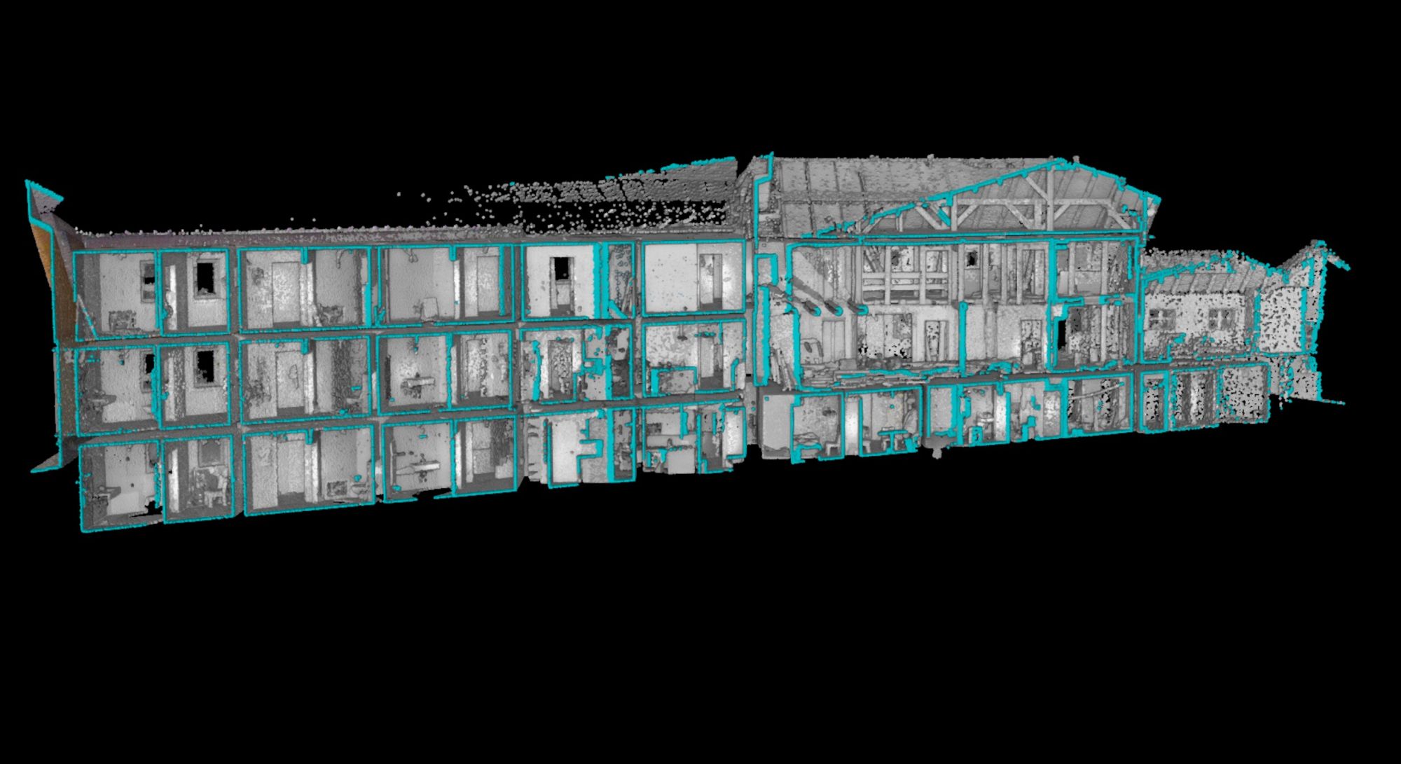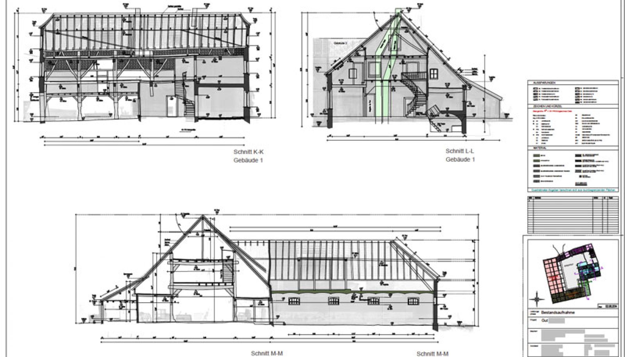 Nun können aus der Punktwolke die genauen Grundrisse, sowie Schnitte in den wichtigen Bereichen generiert werden. Falls gewünscht kann auch ein 3D-Modell für die weitere Bearbeitung generiert werden.